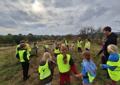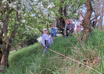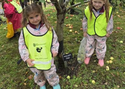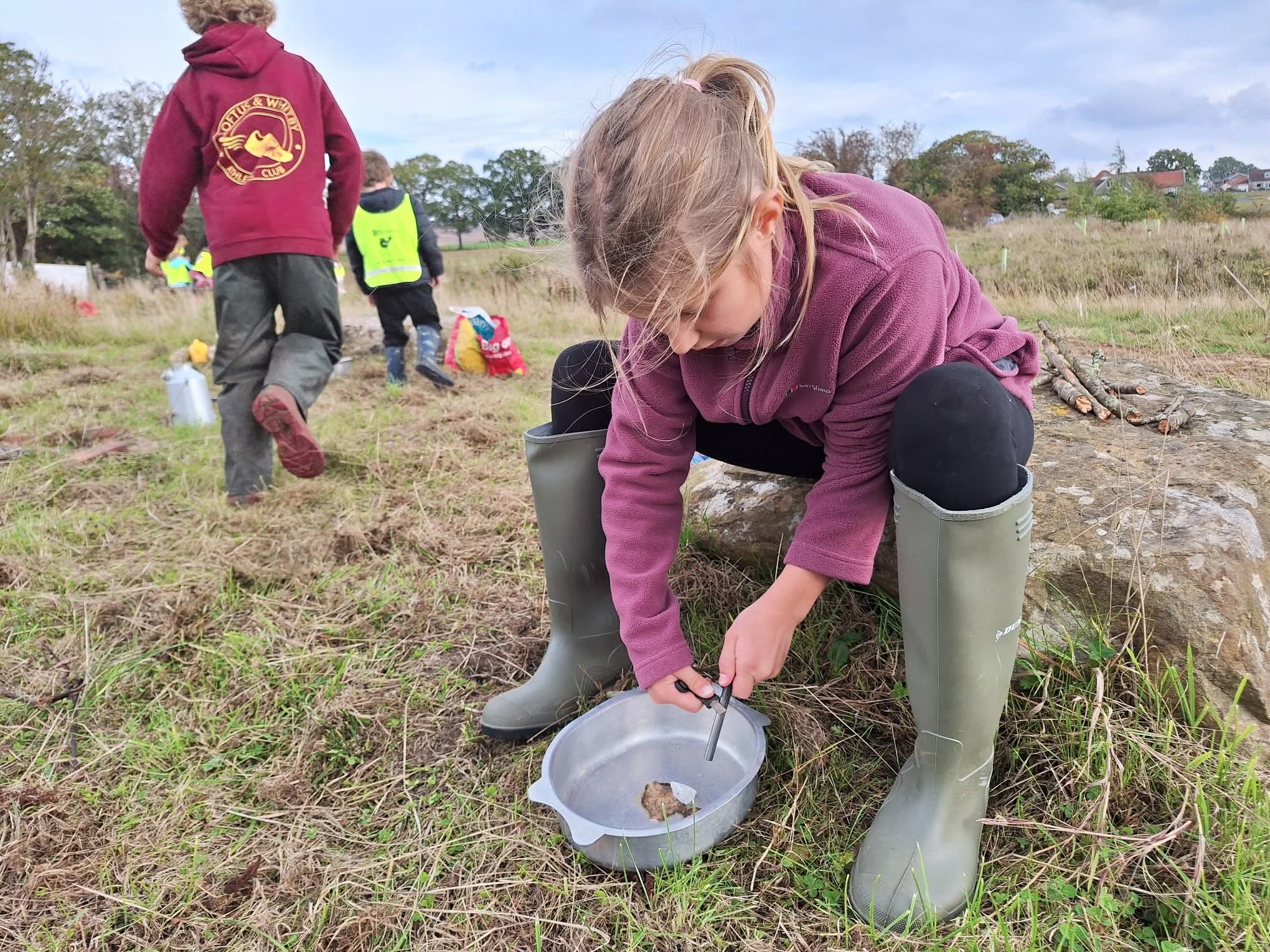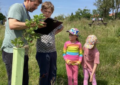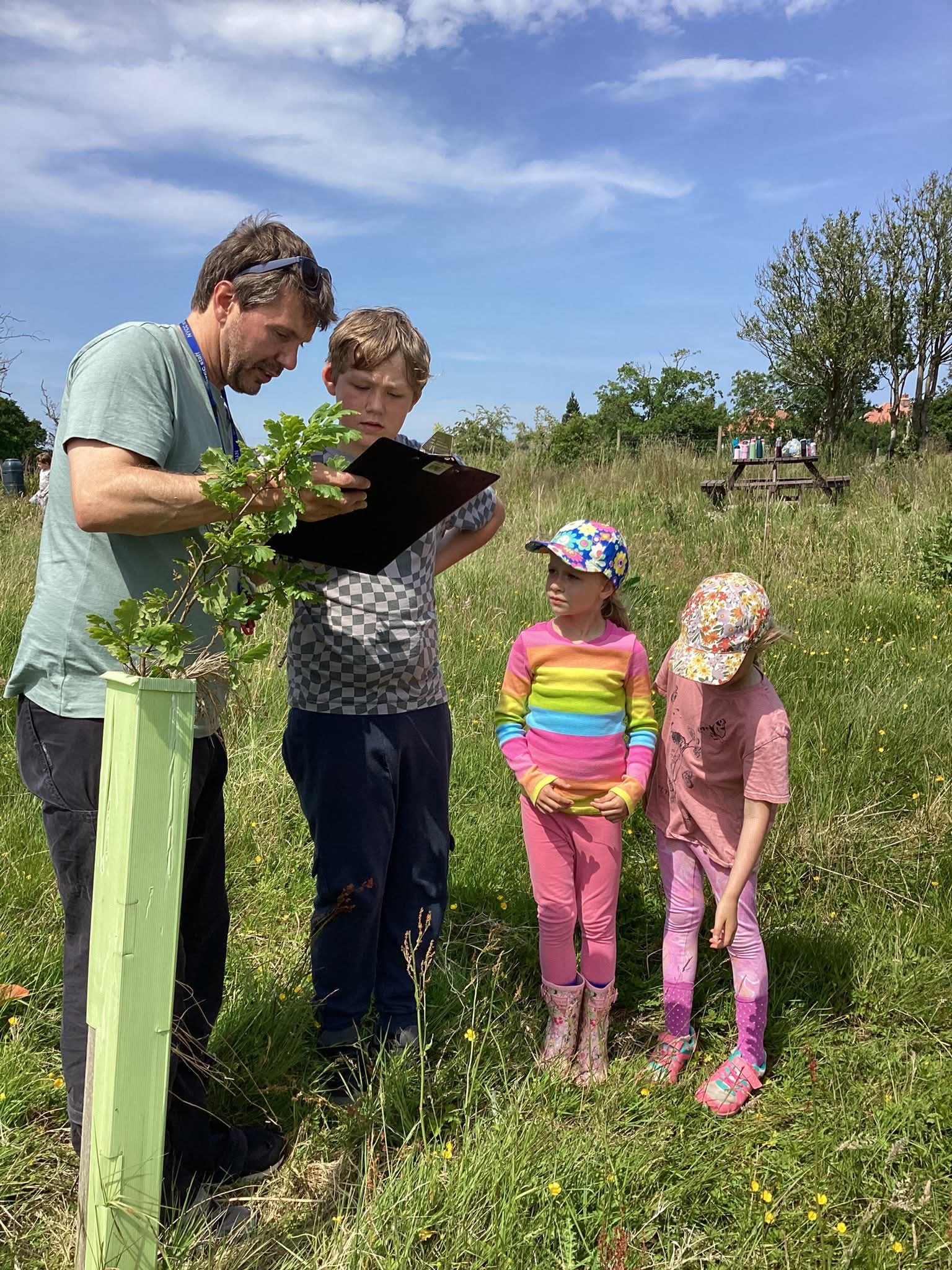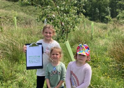 To counteract any negative effects caused by the new hard standing area, a further 21 oak trees and shrubs (native, hardy species) were planted by the children along the flat area of the field and wild flower seeds scattered to encourage insects and animals to the site.