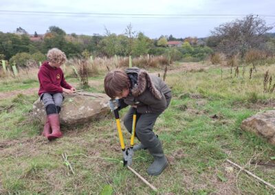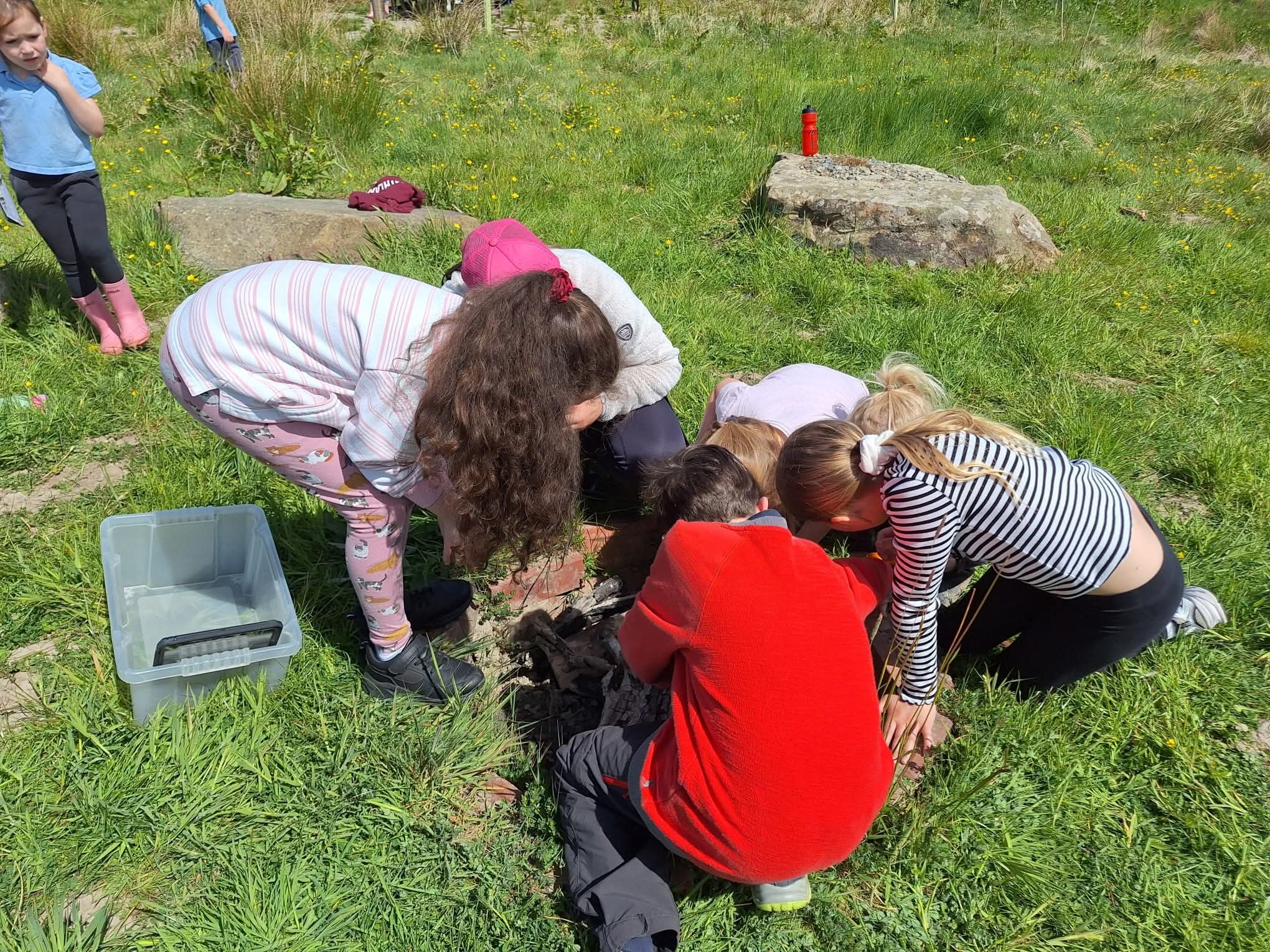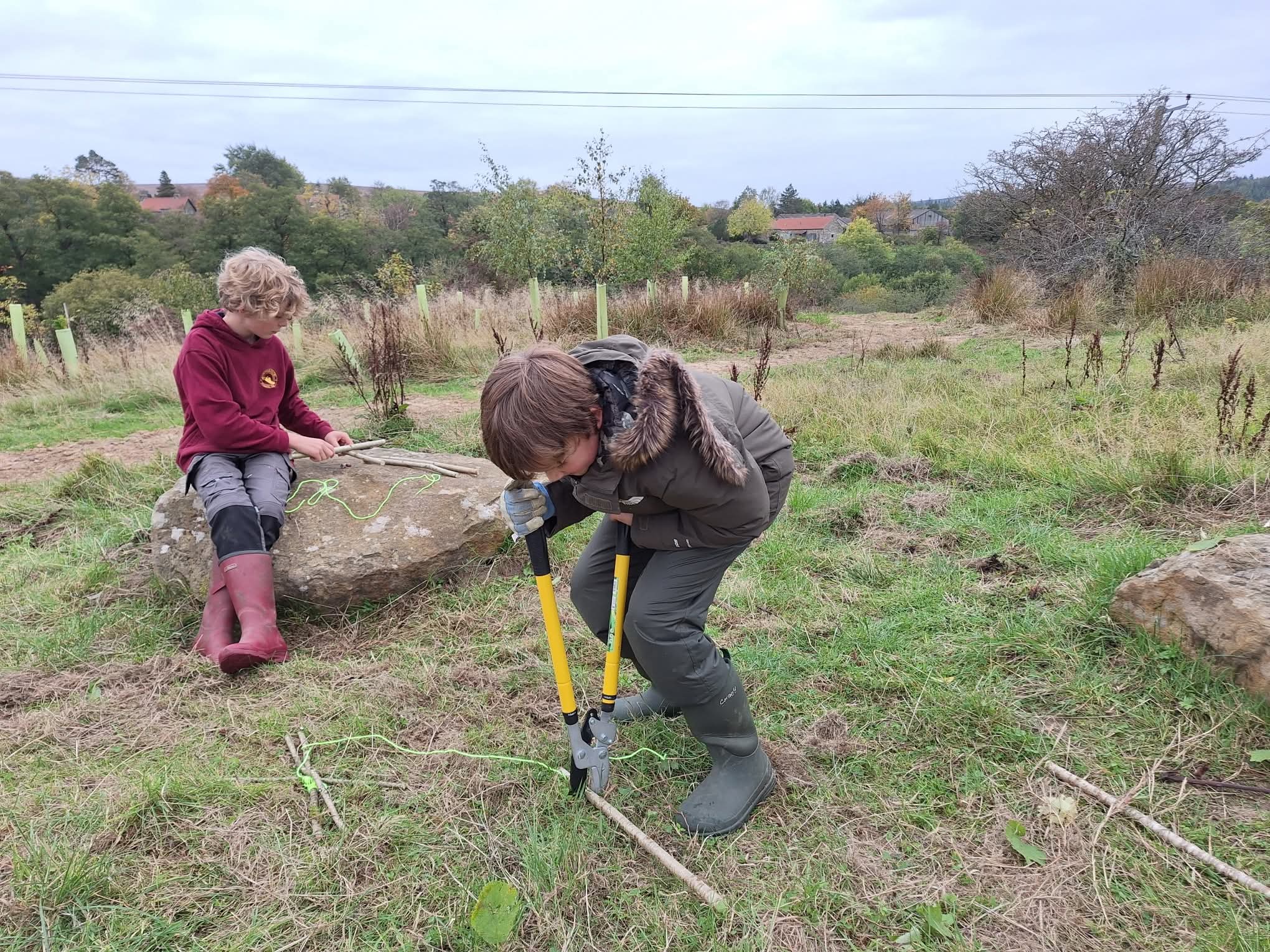 With the help of the North York Moors National Park Rangers the children and parents also dug out the gully and used heather bales to make ‘weirs’ down its length to create wildlife ponds and wetland areas for frogs, toads, newts and aquatic insects at the lower end of the site.